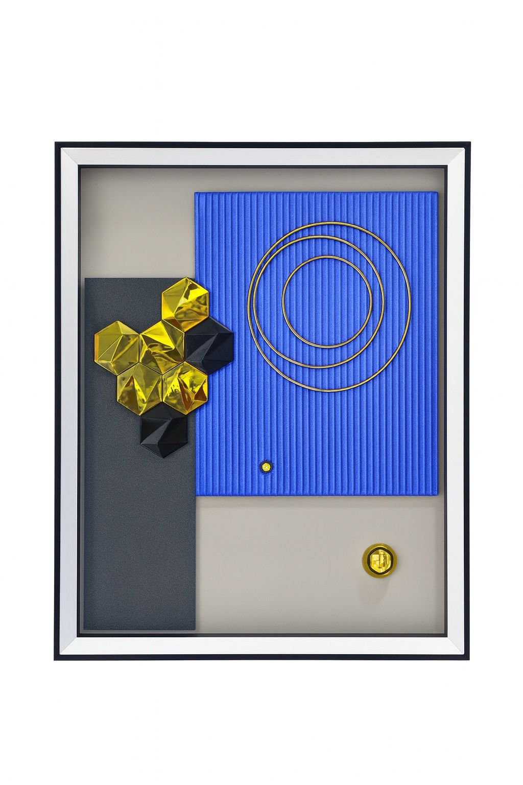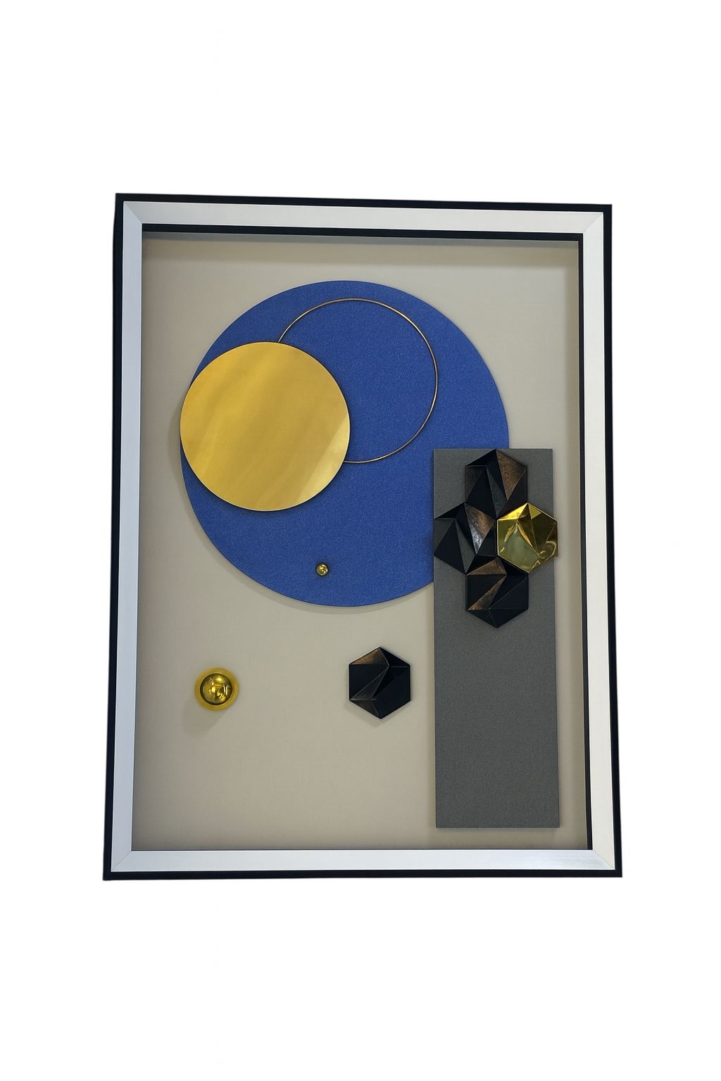 MATERIAL: Marco de madera, pantalla de vidrio y elementos en resina y metal anticorrosivo.
