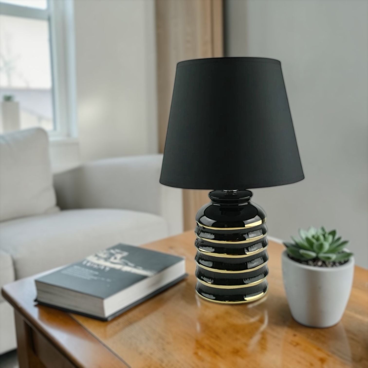 Cerámica y Tela Aprox: 34cm de alto x 16xm de ancho Base: 10cm de diámetro .