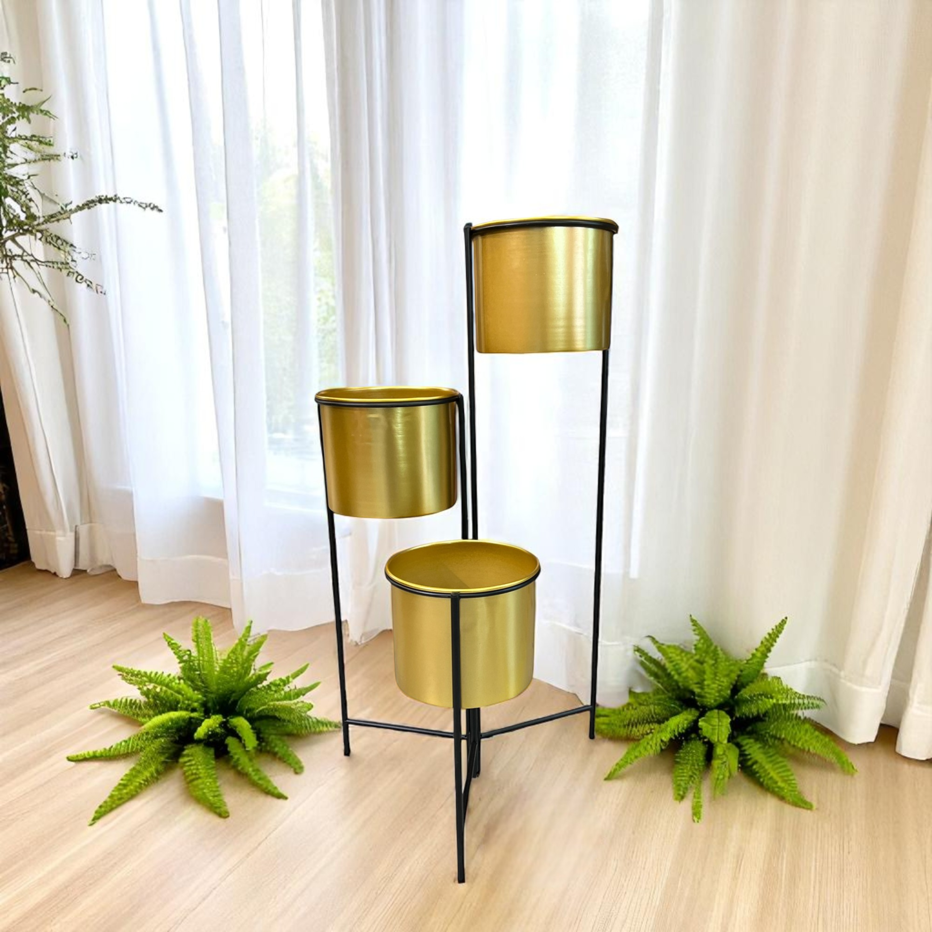 • Porta Maceta 3 Niveles Dorado